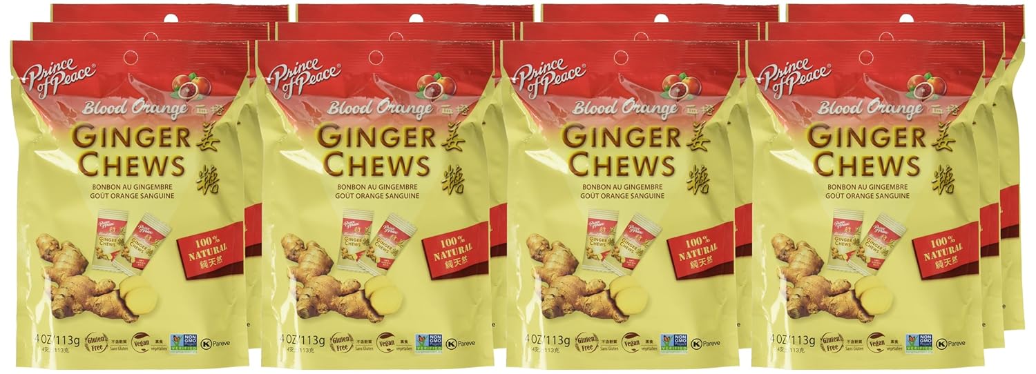 Prince Of Peace Blood Orange Ginger Chews, 100% Natural, Vegan Friendly, Kosher, Gluten Free & Non-GMO, 4 Ounce (Pack of 12)